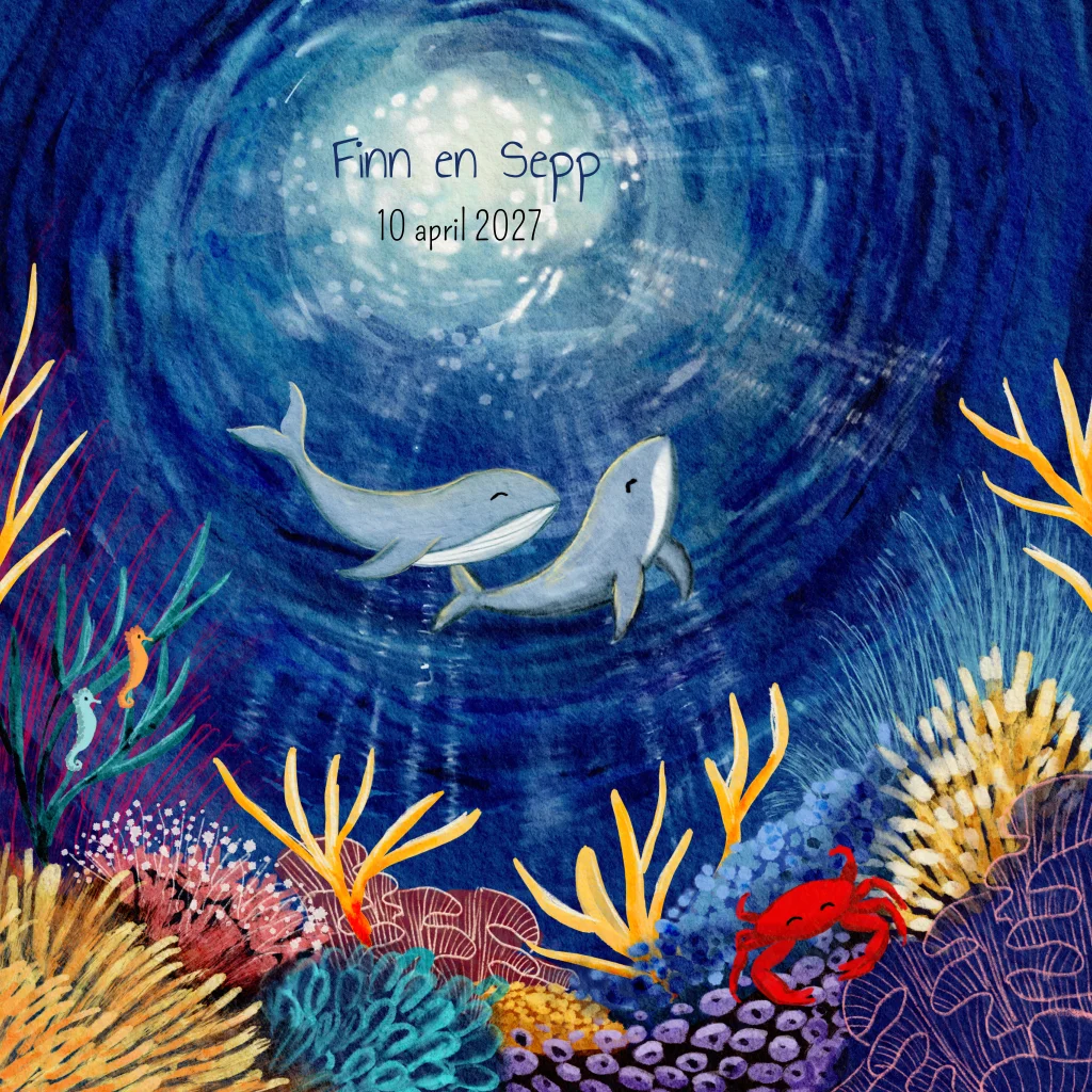 Geboortekaartje voor een tweeling onderwaterwereld met walvissen
