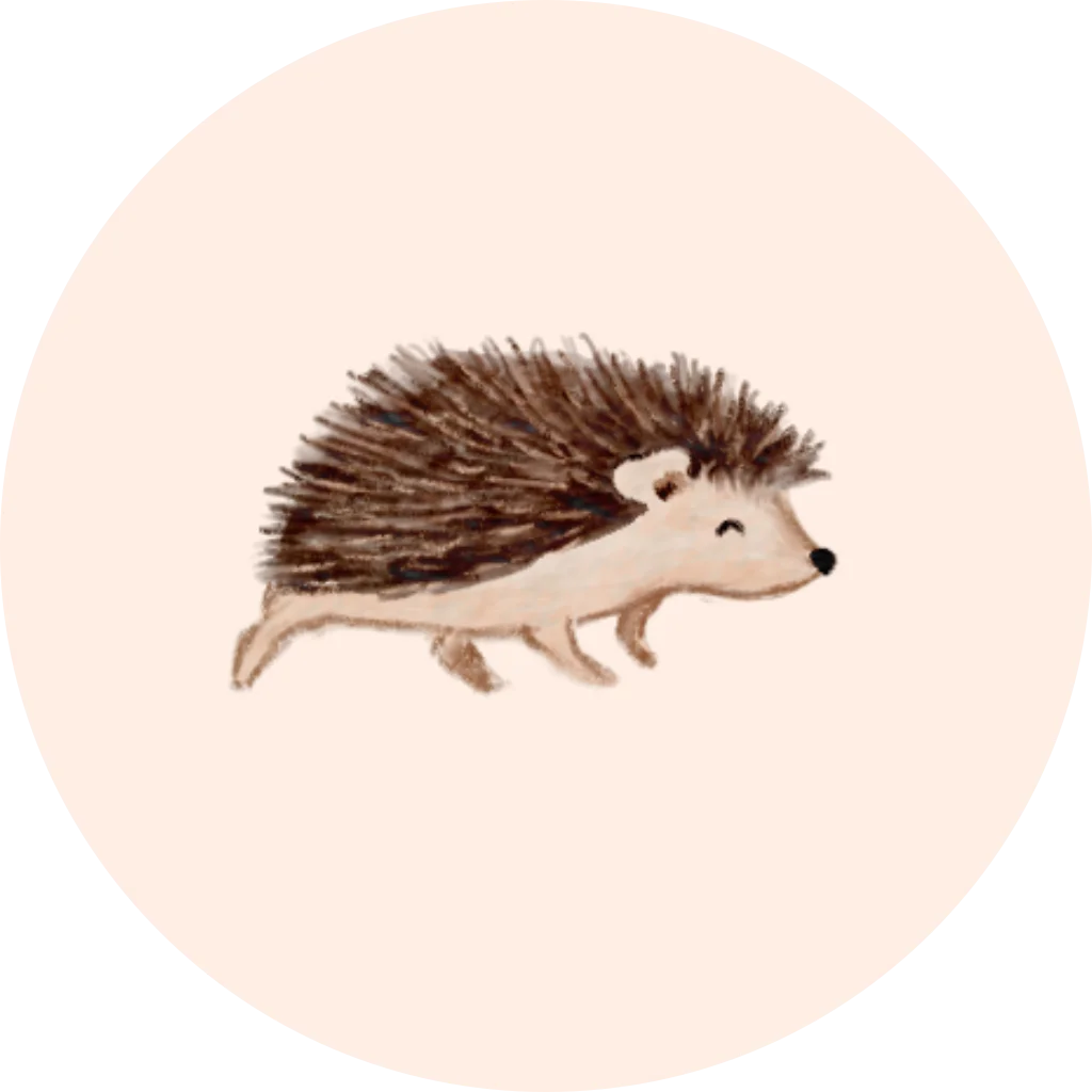 Schattige sluitsticker met een egeltje. De achtergrond kleur kan je gemakkelijk aanpassen in de editor.