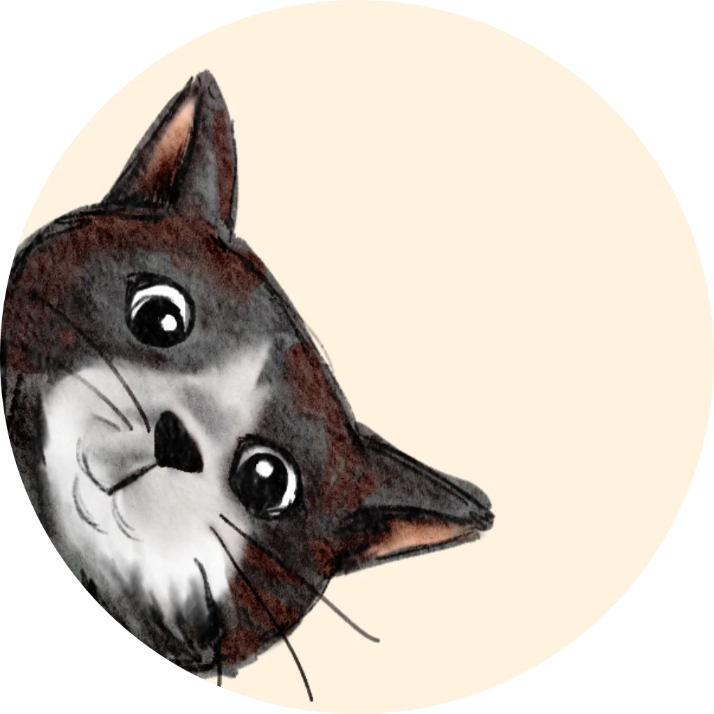 Sluitsticker met nieuwsgierig katje. De achtergrond kleur kan je gemakkelijk aanpassen in de editor.