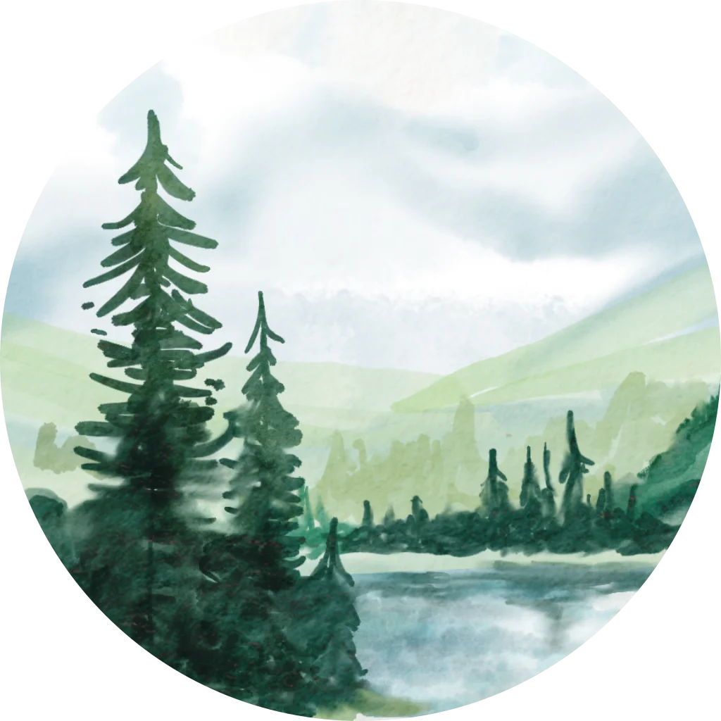 Sluitsticker met landschap aan een meer.